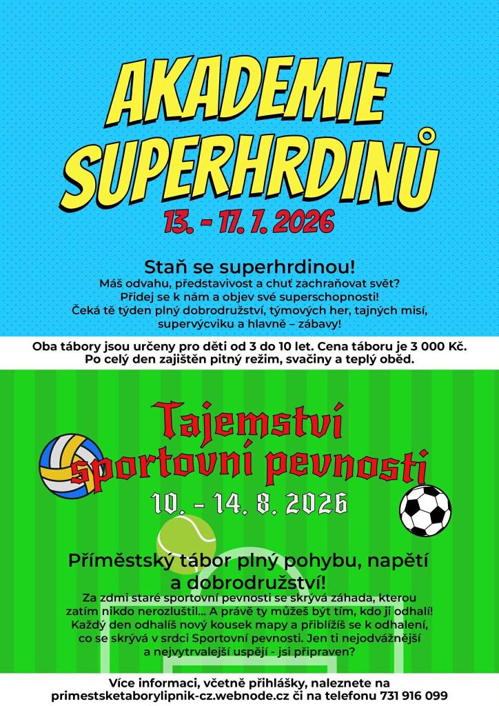 A co děti? Mají si kde hrát? Zatím ne, ale čeká je spousta zábavy na příměstských táborech, které budou o prázdninách probíhat v Lipníku. Neváhejte a přihlaste své ratolesti na tábory.