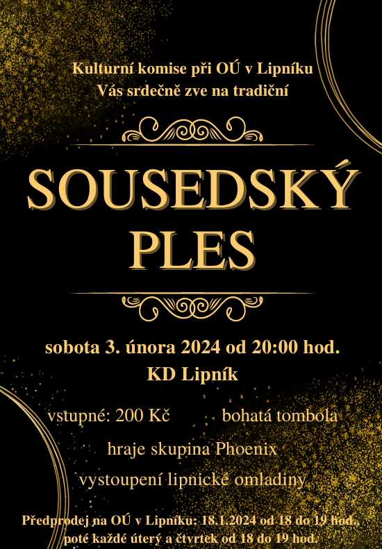 Předprodej na OÚ 18.1.2024 od 18 do 19 hodin a poté každé úterý a čtvrtek ve stejnýh časech